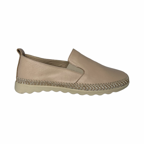 Modella Iris Eggshell Womens Leather Bungee Lace Slip On Plimsoll Shoes